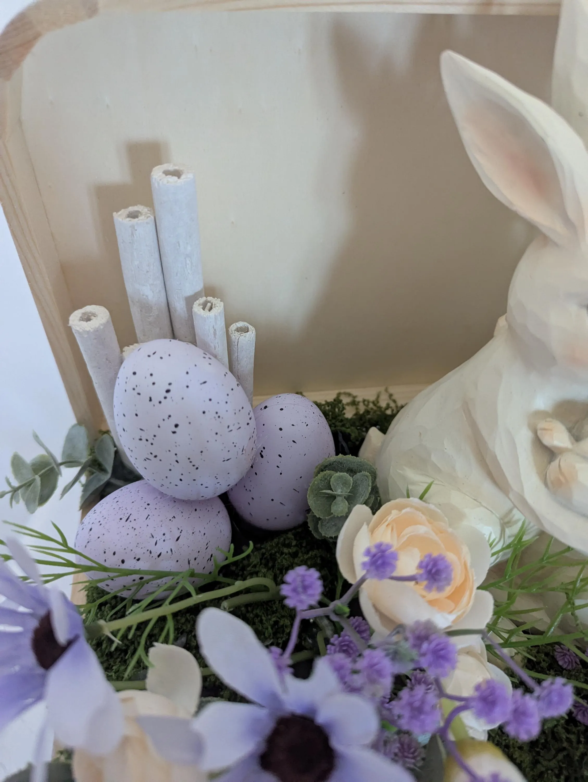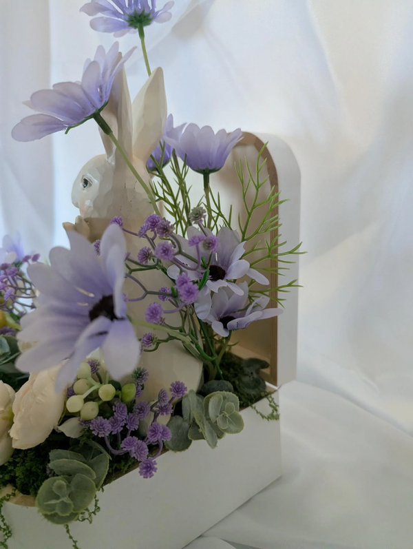 Cette composition élégante apporte une note subtile et une fraîcheur raffinée à votre intérieur, idéale pour célébrer les fêtes Pascale.